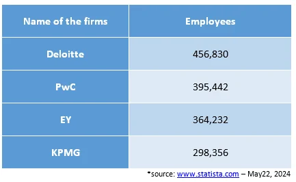 Number of employees of the Big Four accounting/audit firms worldwide in 2023