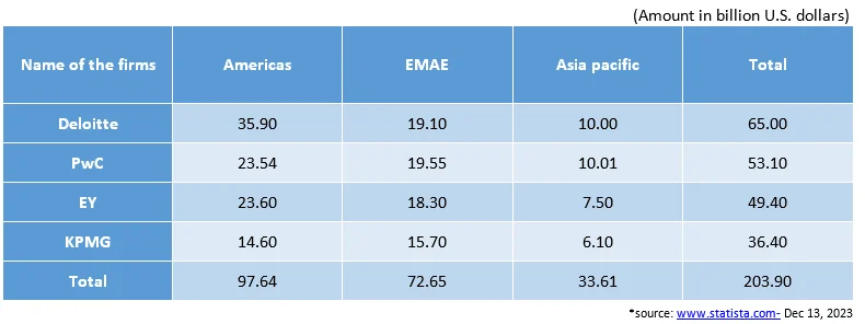 Revenue of the Big Four accounting/audit firms worldwide in 2023, by geographical region