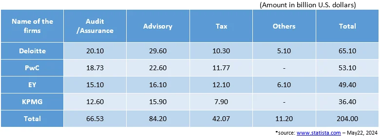 Revenue of the Big Four accounting/audit firms worldwide in 2023, by function.