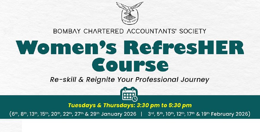 Address: BCAS Auditorium, 7, Jolly Bhavan No. 2, BCAS Chowk, New Marine Lines, Mumbai 400 020 and BCAS Zoom Platform